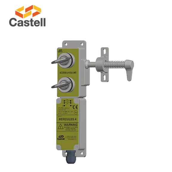 The AIES is a dual key access interlock complete with electrical contacts for use on hinged or sliding doors. The AIES contacts can be used to switch off the machine via its control circuitry or to initialise a signal to visual beacons/sounders. The switch is sealed to IP65 with 1N/O 2N/C contacts, it is rated to 10 amps making it ideal for use in cross monitored safety systems. The interlock is manufactured in a durable stainless steel.