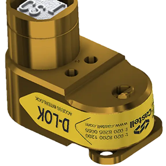 The D type lock is a two-part interlock, comprising of a lock body and rear or front entry mounted catch. Typically, the D lock is used for interlocking electrical control cubicles and distribution panels. It is also suitable for use on light access doors or hatches. The catch is available in two options, one suited to well aligned doors, the other suited to misaligned doors. The D lock is available as FS (figure symbol) or Q lock type.